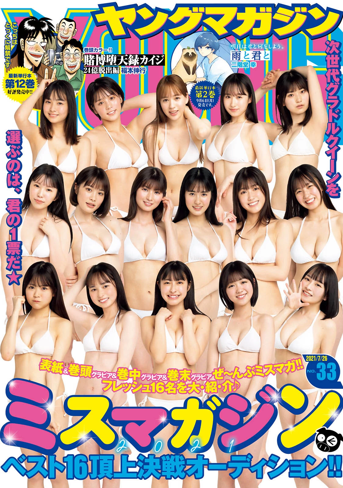 ミスマガジン2021 BEST 16, Young Magazine 2021 No.33 (ヤングマガジン 2021年33號) May 20, 2023 More Babes: Keina Rosario ロサリオ惠奈, Weekly SPA! 2022.06.14 (週刊SPA! 2022年6月14日号) Miki Sato 佐藤美希, FLASH 2022.06.28 (フラッシュ 2022年6月28日號) Aika Yamagishi 山岸逢花, Weekly SPA! 2022.05.03 (週刊SPA! 2022年5月3日号) Moe Iori 伊織もえ, Shonen Champion 2021 No.25 (少年チャンピオン 2021年25號) Risa Yukihira 雪平莉左, FLASH 2022.07.05 (フラッシュ 2022年7月5日号) Azusa Ohara 大原梓, Weekly Playboy 2021 No.24 (週刊プレイボーイ 2021年24號) Ema Ito 伊藤愛真, FRIDAY 2022.07.29 (フライデー 2022年7月29日号) Aya Kusano 草野綾, FLASH 2022.07.05 (フラッシュ 2022年7月5日號) Akane Oda 小田茜, Shukan Gendai 2022.04.02 (週刊現代 2022年4月2日号) Umi Shinonome 東雲うみ, Young Champion 2021 No.14 (ヤングチャンピオン 2021年14號) Saika Kawakita 河北彩花, Shukan Post 2022.07.22 (週刊ポスト 2022年7月22日号) Ayame Misaki 水崎綾女, Weekly Playboy 2021 No.30 (週刊プレイボーイ 2021年30號) Tsubomi つぼみ, FLASH 2022.09.13 (フラッシュ 2022年9月13日号) Asuka Kawazu 川津明日香, Young Jump 2021 No.35 (ヤングジャンプ 2021年35號) Asuna Kawai 河合あすな, Shukan Taishu 2022.08.15 (週刊大衆 2022年8月15日号) Mizuki Hoshina 星名美津紀, アサ芸Secret Vol.71 2021.08.07 Hana Takeuchi 竹内花, FRIDAY 2022.09.23 (フライデー 2022年9月23日号) Shiori Hamabe 浜辺栞帆, Shukan Post 2022.04.22 (週刊ポスト 2022年4月22日號) Yui Hatano 波多野結衣, Shukan Jitsuwa 2022.10.20 (週刊実話 2022年10月20日号) Asuka Kawazu 川津明日香, Shonen Sunday 2021 No.49 (週刊少年サンデー 2021年49號)