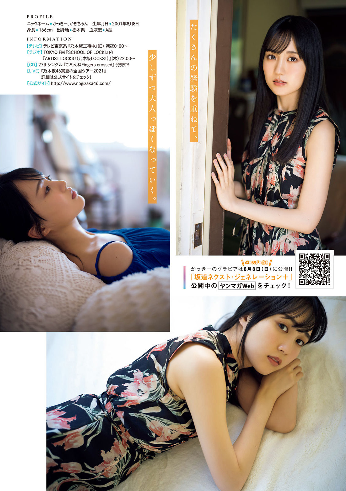 Haruka Kaki 賀喜遥香, Young Magazine 2021 No.36-37 (ヤングマガジン 2021年36-37号) February 23, 2024 Haruka Kaki 賀喜遥香, Young Magazine 2021 No.36-37 (ヤングマガジン 2021年36-37号) More Babes: Hana Murphy マーフィー波奈, Weekly Playboy 2023 No.21 (週刊プレイボーイ 2023年21号) Yumi Wakatsuki 若月佑美, Weekly SPA! 2021.08.31 (週刊SPA! 2021年8月31日号) Nanacha なな茶, Weekly Playboy 2023 No.22 (週刊プレイボーイ 2023年22号) Risa Watanabe 渡邉理佐, Non-no Magazine 2020.09 Misumi Shiochi 塩地美澄, Shukan Gendai 2023.04.29 (週刊現代 2023年4月29日号) Natsumi Hirajima 平嶋夏海, FRIDAY 2021.11.05 (フライデー 2021年11月5日号) Seira Hayakawa 早川聖来, B.L.T. 2021.06 (ビー エル ティー 2021年6月号) Renka Iwamoto 岩本蓮加, UTB 2021.08 (アップトゥボーイ 2021年8月号) Aika Sawaguchi 沢口愛華, ENTAME 2021.11 (月刊エンタメ 2021年11月号) Yuuko Tsubakino 椿野ゆうこ, FLASH 2022.03.08 (フラッシュ 2022年3月8日号) Hina Kawata 河田陽菜, FRIDAY 2022.03.11 (フライデー 2022年3月11日号) Ayane Suzuki 鈴木絢音, Shonen Magazine 2022 No.16 (週刊少年マガジン 2022年16号) 柏木由紀&WACK SELECT 7写真集, Young Jump 2022 No.17 (ヤングジャンプ 2022年17号) Midori Nagatsuki 長月翠, Weekly Playboy 2022 No.15 (週刊プレイボーイ 2022年15号) Hinako Sano 佐野ひなこ, FRIDAY 2022.04.01 (フライデー 2022年4月1日号) Seika Furuhata 古畑星夏, Sachi Fujii 藤井サチ, ViVi ヴィヴィ 2022.03 Meru Nukumi 生見愛瑠, CanCam キャンキャン 2022.05 Seira Jonishi 上西星来, aR (アール) Magazine 2022.04 Moe Kawase 川瀬もえ, Young Jump 2022 No.22 (ヤングジャンプ 2022年22号) Runa Toyoda 豊田ルナ, STRiKE! プラチナム 2021.08.03